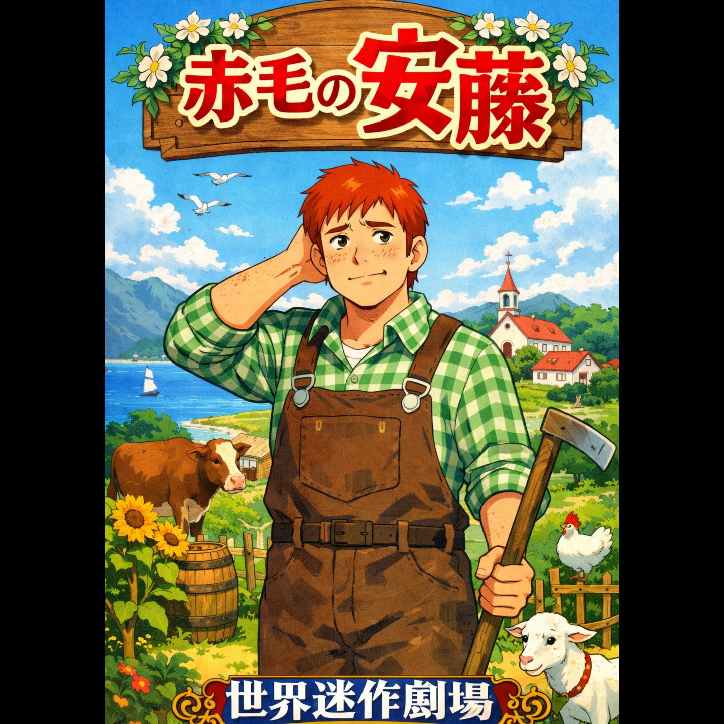 Bright orchestral anime-style theme inspired by classic family adventure shows, Gentle acoustic guitar, warm strings, flute, and light orchestral percussion, Cheerful and nostalgic atmosphere like a wholesome 1980s animated opening, The intro feels dreamy and scenic, evoking wide green fields and adventure, Verses are calm and pastoral, then the chorus suddenly becomes grand and emotional with full orchestra and choir, dramatically singing the hook, The arrangement should sound overly serious and heartfelt, creating a humorous contrast when the lyrics reveal the simple punchline, Tempo around 120–130 BPM, uplifting, melodic, and cinematic