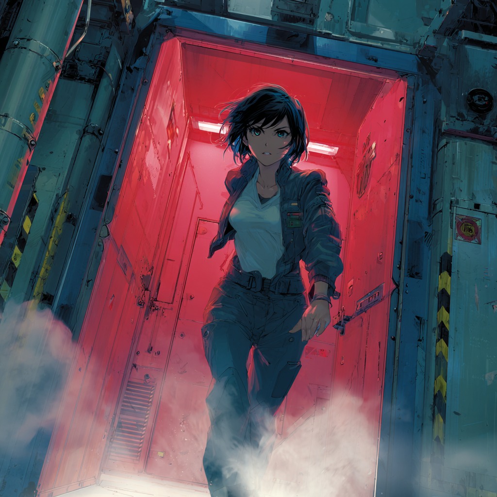 bit-crush, glitch industrial trip-hop, double-time drums, distorted sidechain synths, crunchy rhythm guitars, stuttered vocal chops, filtered pads, radio-comms distortion, slapback delay, wide anthemic chords, stacked shouts, stop-start breaks, launch countdown, explosive chorus, 2000s gloss, hi-fi stereo, punchy transient drums, dynamic build drops, night drive urgency