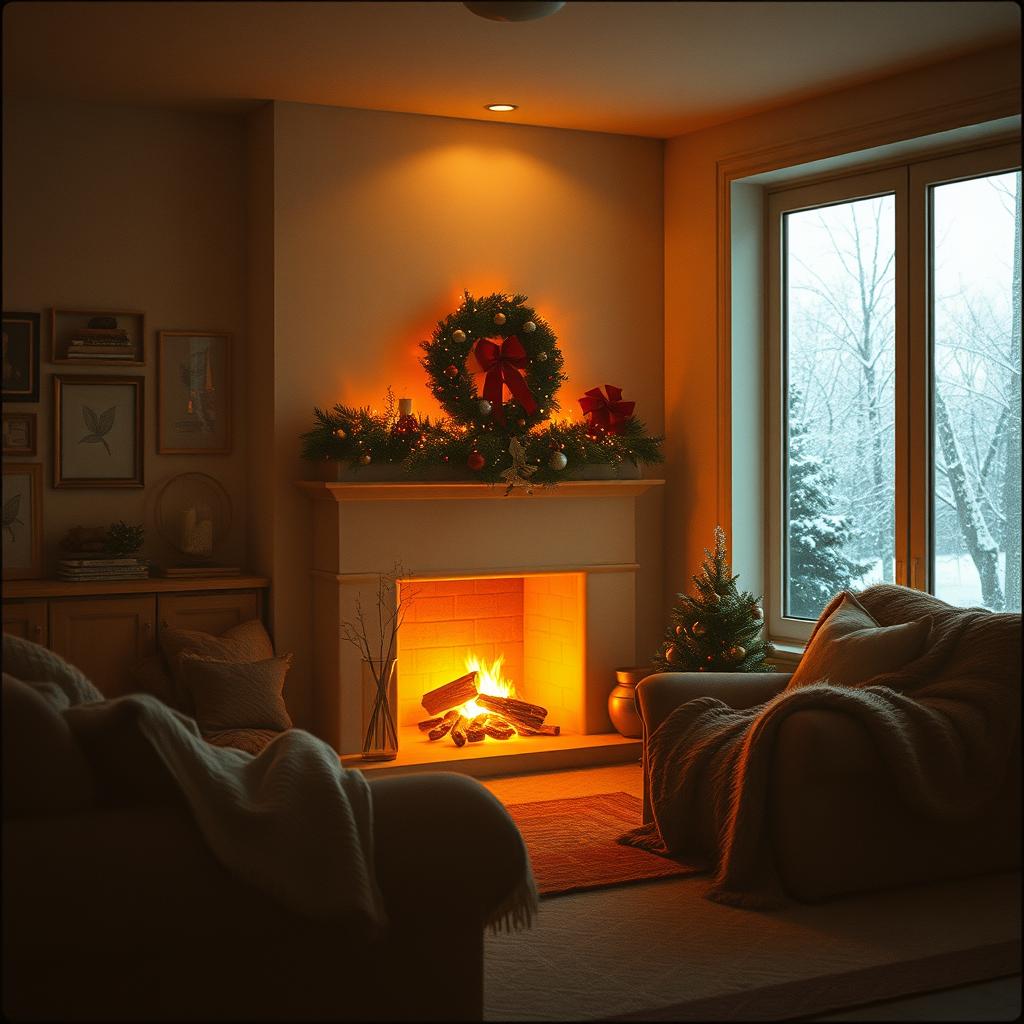 folk, Warm indie-folk ballad with sleigh bells tucked behind brushed drums, soft celesta twinkling over nylon guitar and upright bass, Male vocals in a half-spoken, half-sung delivery; intimate verses stay close-mic’d, then the euphoric chorus blooms with stacked harmonies, glockenspiel doubles, and a roomy tambourine, Subtle organ swells add reverent depth, ending on a hushed, lingering chord, soothing, warm, smooth, ballad, emo, light, xmas, christmas background embellishments, pristine studio-mix, subtle christmas instruments in the background, celesta, sleighbells