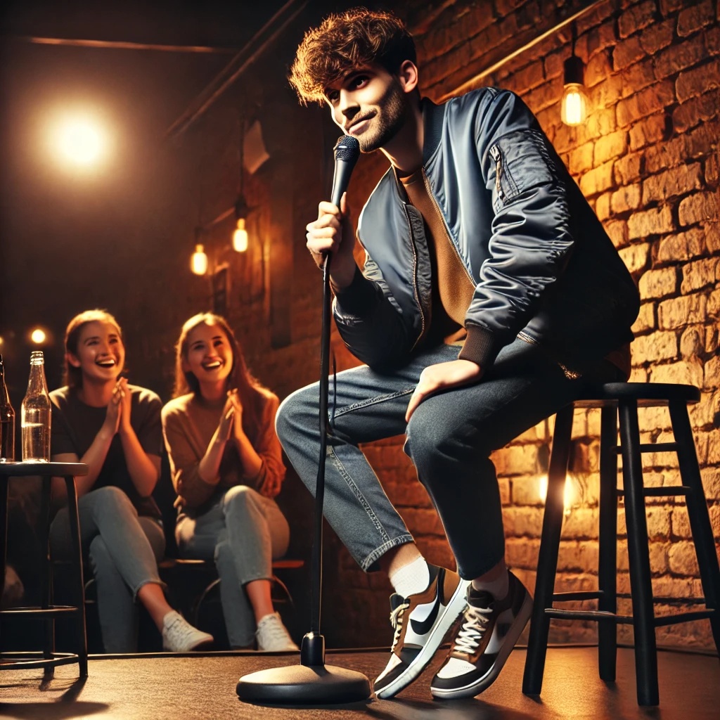 spoken word, comedic, male, crowd, clear voice, non-musical, high-quality audio, clear audio, remastered, audience