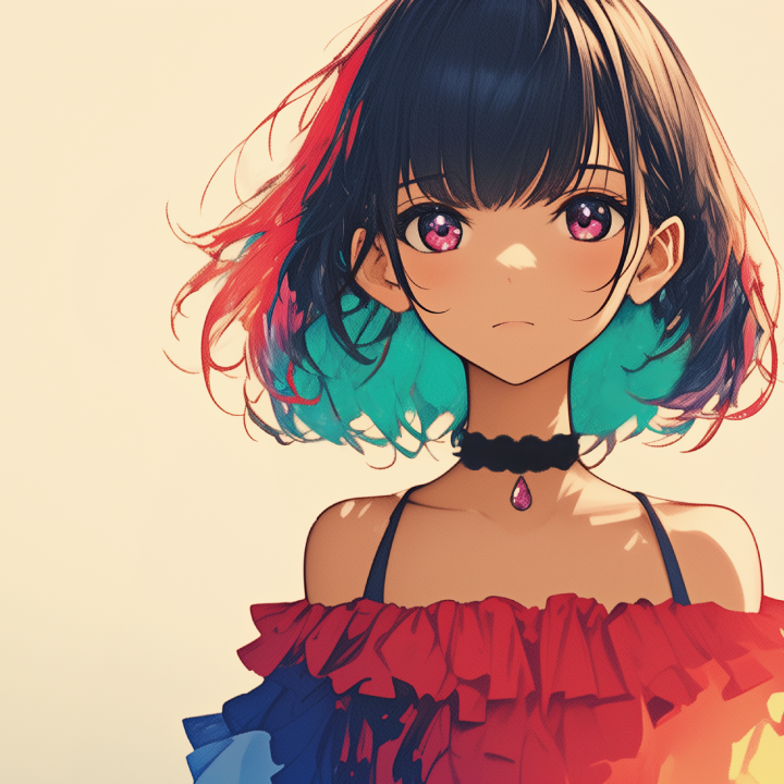 Japanese avant-garde idol, cute and pop singing voice, AI, applause, sing-along, live performances, playfulness, irony, rebelliousness, rock with a touch of metal, superb electric guitar and drum technique, fusion of high-speed rap and ballads, dramatic composition