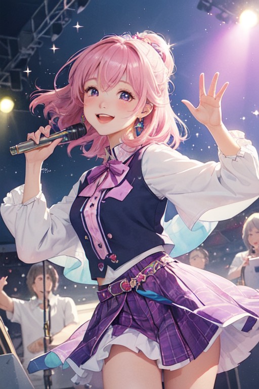 Female JP Rap Rock – 150 BPM – Catchy, Energetic, Fun – Bright distorted guitars + bouncy trap-pop drums + 808 bass + pop synth accents – Playful female Japanese rap verses with clear JP pronunciation and natural phrasing, big melodic singalong chorus with “Whoa! Yeah! Hey!” calls – Cheerful and confident tone, hook-driven phrasing – Use full Japanese lyrics pronunciation (ひらがな/カタカナ accent, avoid Engrish) – Modern punchy mix with sidechained low-end and wide stereo guitars – Structure: Short intro (guitar stab + crowd “Hey!”) → Verse (rap flow with claps) → Pre (build + rising synth) → Chorus (anthemic singalong + call & response) → Verse2 (rap + ad-libs) → Pre → Chorus (double hook) → Bridge (half-time groove + crowd chant “Whoa Whoa!”) → Final Chorus (layered vocals + sustained guitars, bright outro)