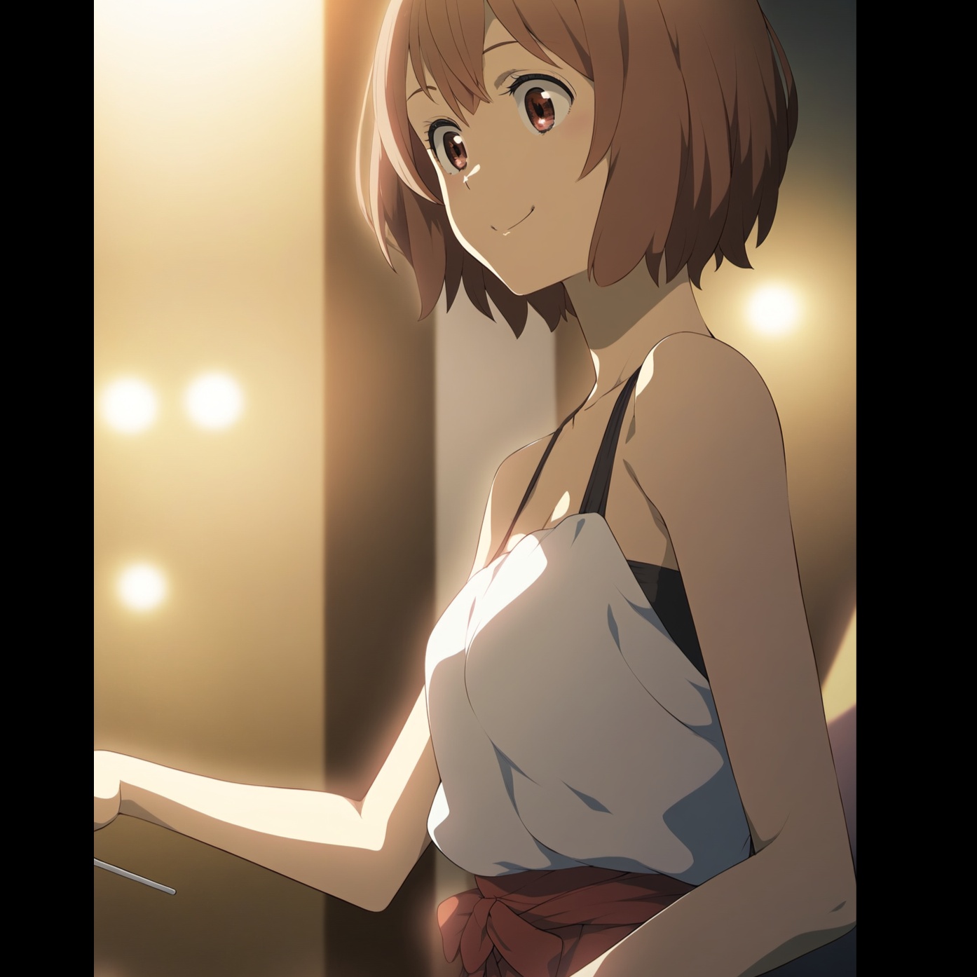 A bright and gentle Japanese pop-rock song at ~104 BPM, Sung by a soft-voiced female character who is in love but keeping it a quiet secret, The song should feel like a soft confession — light, sincere, and a little bouncy, Acoustic guitar, piano, and light drums carry the rhythm, The chorus should feel warm and quietly happy, as if smiling while remembering someone