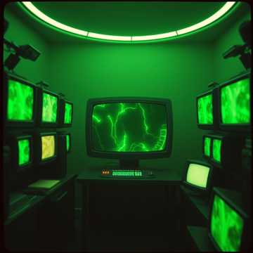 80s Soviet Disco shifting to Darkwave and Horror Synth, cheery start turning into creepy atmospheric electronic, detuned ending