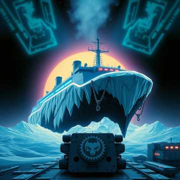 Sci-Fi Sea Shanty Death Metal, Deep Guttural Vocals, Industrial Synthesizers, Heavy Distorted Bass, Rhythmic Blast Beats, Space-Freight Percussion, 6/8 Time Signature