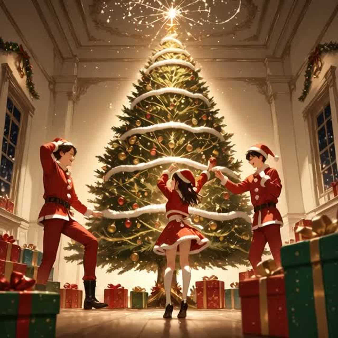 [effect: Reverb sparkle, reverse chimes, vocal chops, glittery risers, soft wind FX, festive delay, shimmering high-end polish]