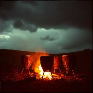 Unleash a tribal groove metal assault rooted in primal rhythm and revolutionary energy, Massive detuned guitars drive a grinding syncopated riff, joined by booming tribal percussion, djembes, toms, and congas that merge with a thunderous drum kit, The groove swings between mid-tempo stomps and explosive chant-driven breakdowns, Vocals are fierce and rhythmic—half-screamed, half-chanted—channeling rebellion, unity, and spiritual reawakening, Bass rumbles with earthy depth beneath layers of feedback and ritual percussion, The sound fuses early 2000s nu-metal heaviness with South American tribal intensity and death metal grit, Anthemic call-and-response vocals ignite like a war cry, The production is dense, raw, and physical, evoking fire circles and revolutionary ceremonies beneath storming skies, ‑female