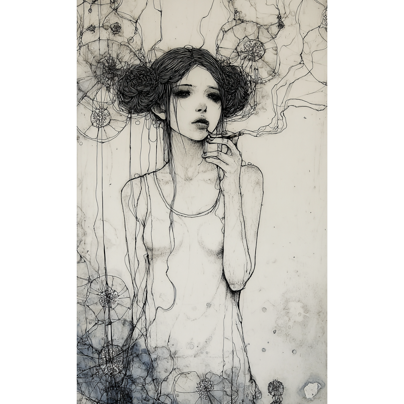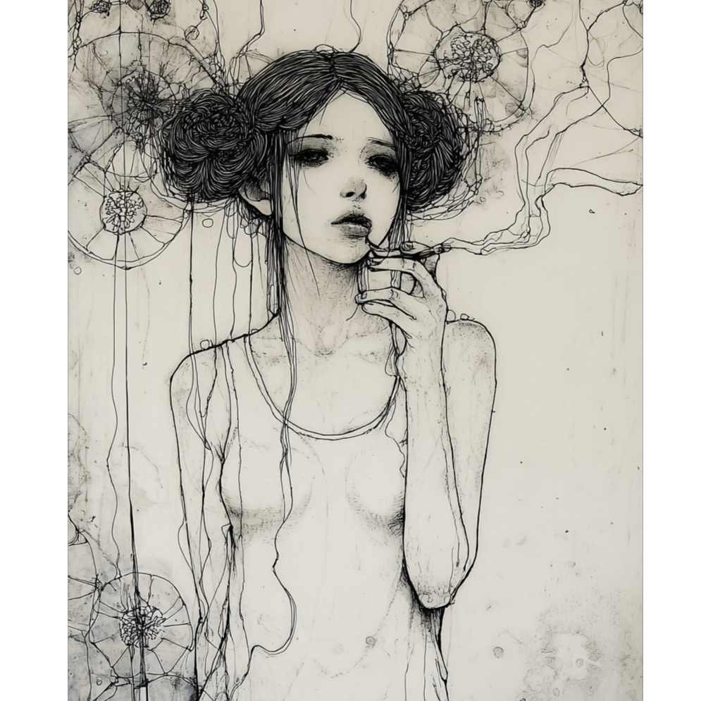 Downer ambient trip hop, Jazz, Poetry Recitation by Women, slow tempo, Dark and melancholic atmosphere, lo-fi, husky and deep voice, Double bass