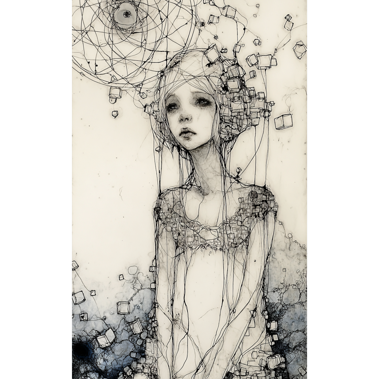 Guitar drone Noise ambient, wall of sound, Poetry Recitation by Women, slow tempo, Dark and melancholic and sadness atmosphere, 90's shoegazer with electronica rhythms, Roaring Distortion Guitar