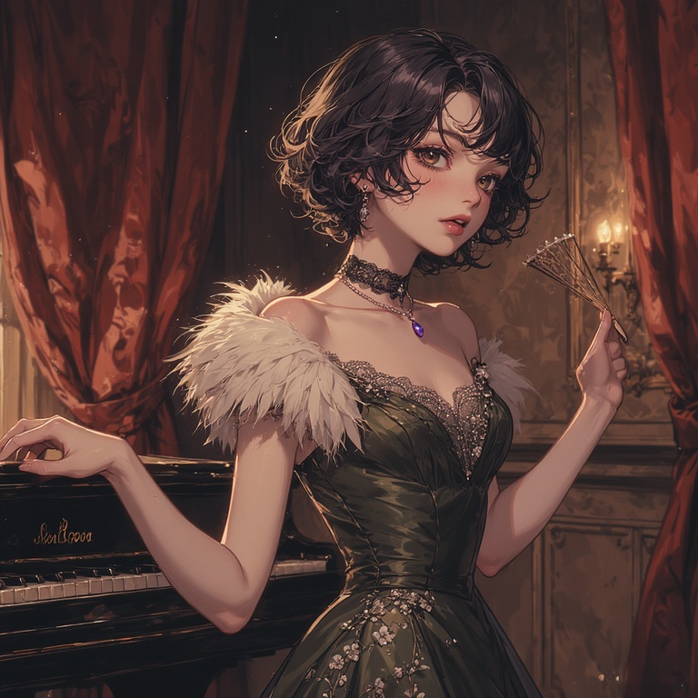 Vintage Viennese cabaret song in a light 2/4 Polka rhythm, around 96 BPM, key: C Mixolydian, Warm, low female lead vocal with soft texture and emotional phrasing, intimate mono stage sound, Spoken injections with subtle viennese dialect, Instrumentation: accordion, clarinet, electric Rhodes piano with soft, mellow tone and gentle vibrato, acoustic rhythm guitar strumming, upright bass, brushed snare keep a steady rhythm, Tape-warm mono mix, small-stage acoustics, Mood: joyful, tender, flirtatious — the spirit of an old ballroom reborn as a cabaret, Pronounce ‘Jean’ in French (‘Schan’)