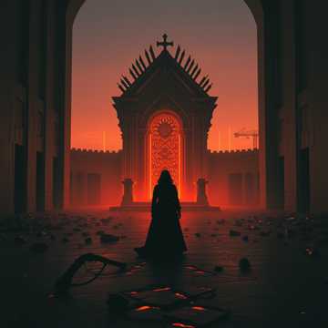 Memphis May Fire-style metalcore; dark collapse theme, Low-tuned riffs, tense ambience, gritty vocals, male vocals, Structure: Intro (distant feedback + filtered riff swelling) → Verse 1 (broken self-awareness, slow chugs) → Pre-Chorus (melodic tension lift) → Chorus (big emotional release, soaring cleans) → Verse 2 (heavier groove, double-kick accents) → Pre-Chorus → Chorus → Guitar Solo (chaotic tapping bursts → sliding bends → melodic octave harmony resolving into ambient tail) → Breakdown (half-time crush, syncopated accents, scream callouts) → Bridge (soft clean-guitar reflection) → Final Chorus (stacked harmonies) → Outro (clean arpeggio fading), Energy: slow rise, sharp peaks, bleak to hopeful arc