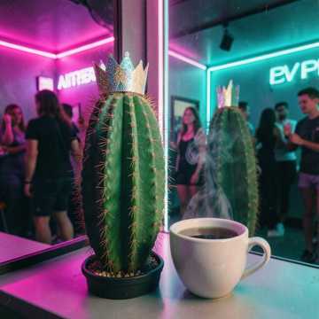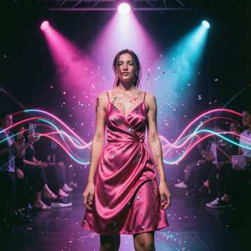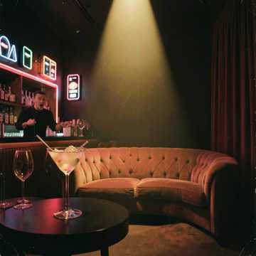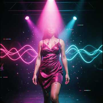 atmosphere of a neon club night heavy electronic bass catchy groove glitch effects and whisper vocals