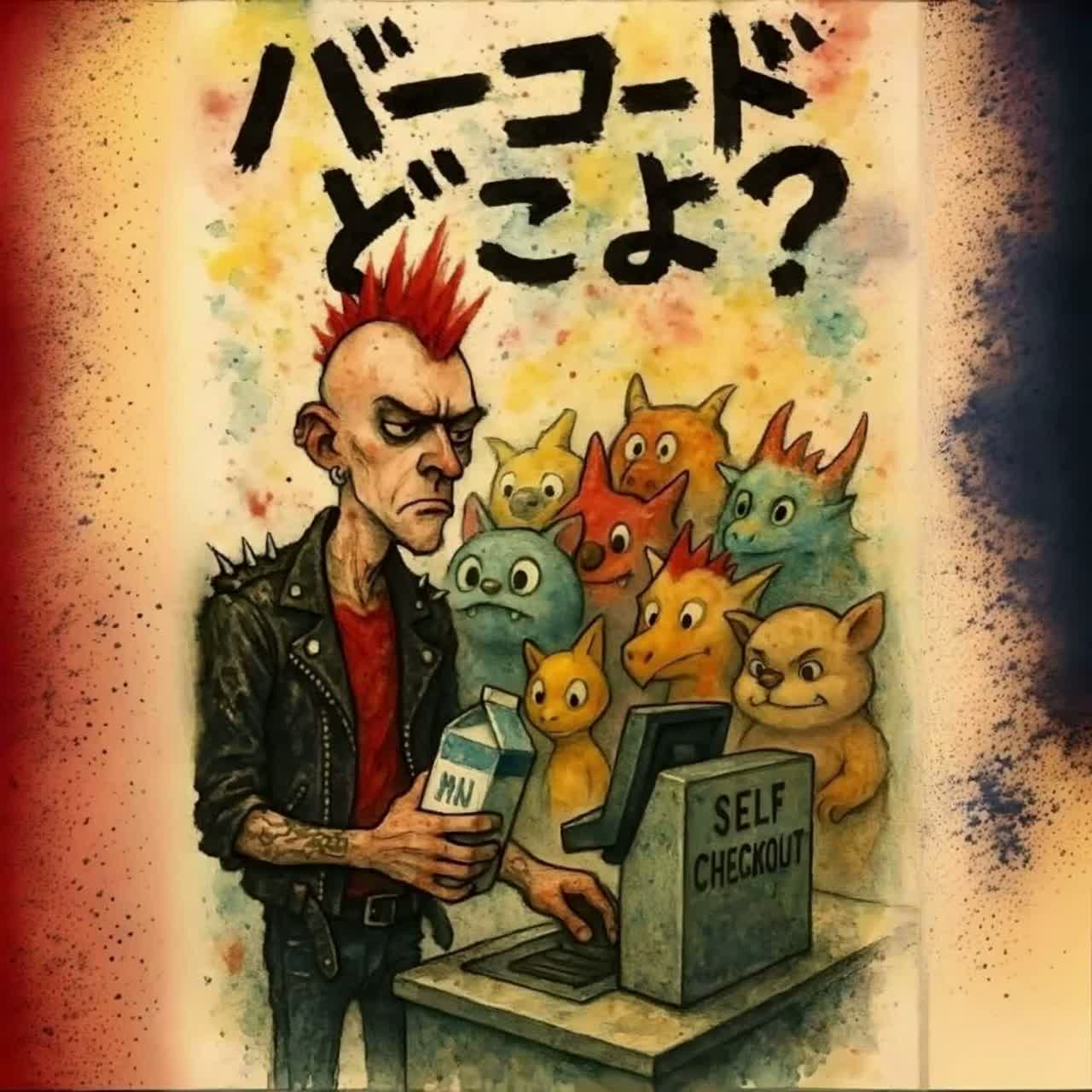 style: Japanese punk rock, high energy, fast BPM, distorted guitar power chords, gang vocals for chorus, chaotic and comedic atmosphere like a summer festival anthem
