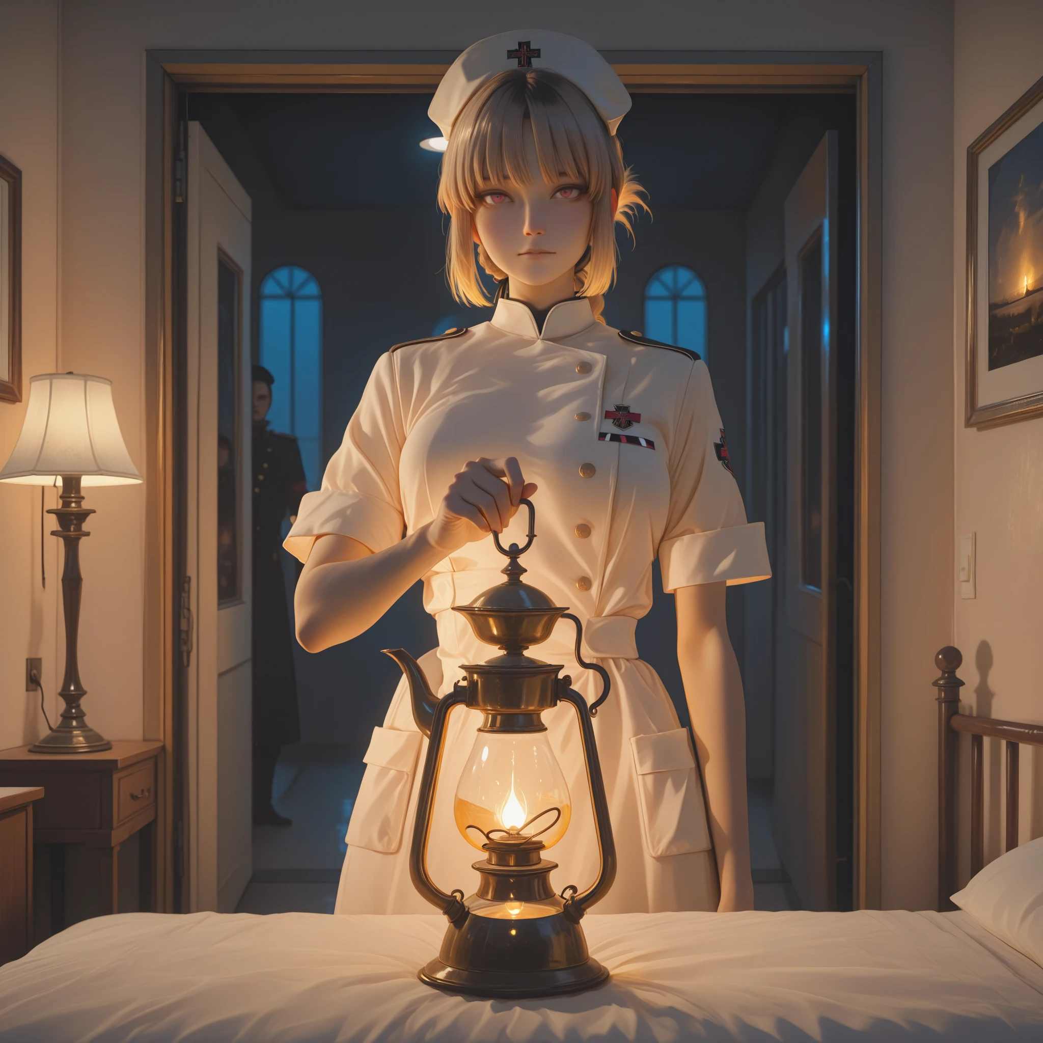 Sound image: War hospital corridors at night, a single moving light, order replacing chaos through movement
