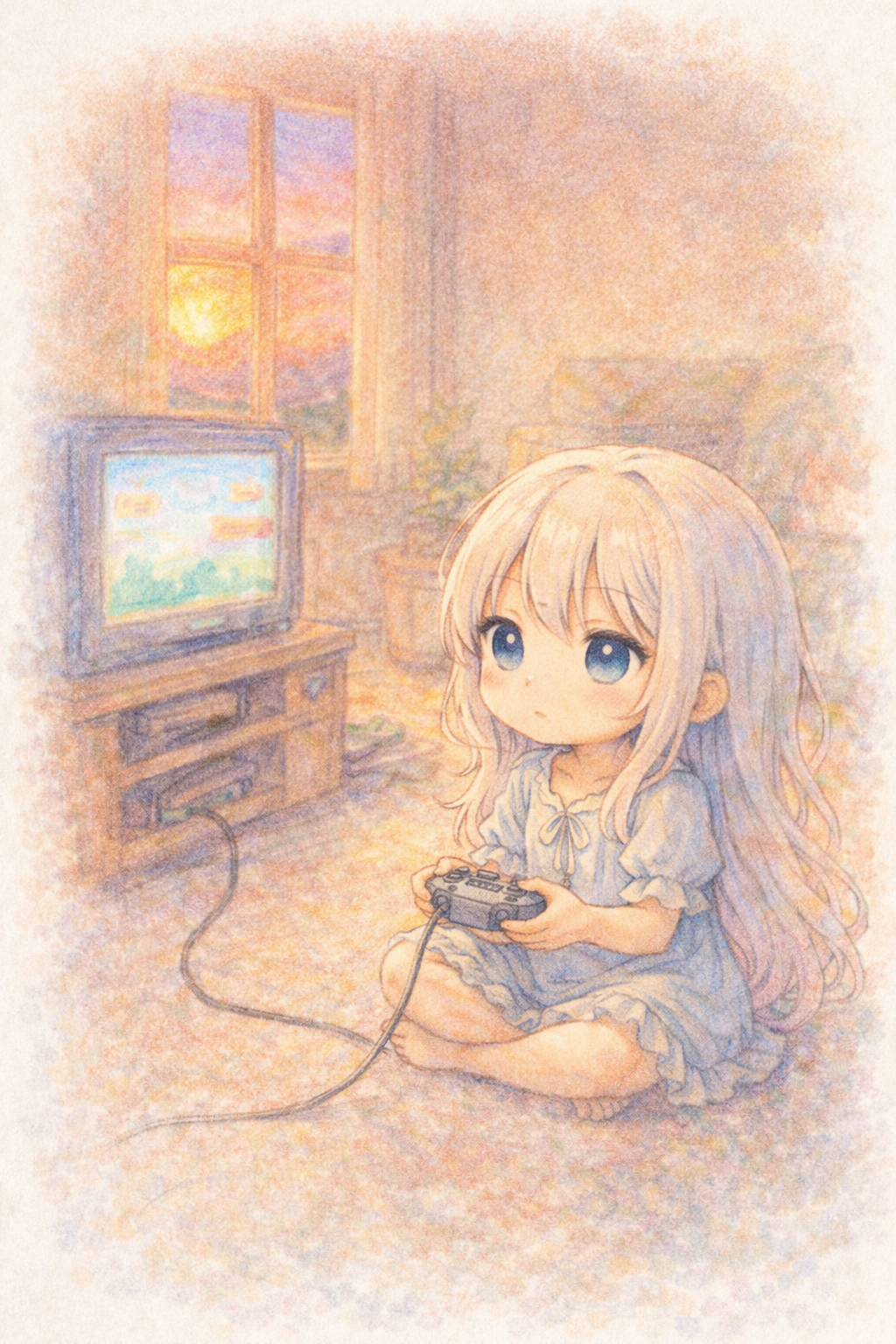 Nursery rhyme–style 8-bit chiptune, Simple and minimal, Soft pico-pico 8-bit sounds only, Very gentle waltz-like feel (3/4), Slow and steady, slightly swaying, Do not make it elegant or dramatic, Soft, rounded snare or light percussive pulse, Quiet and unobtrusive, Slow, calm tempo, Do NOT rush the vocals, Sing slowly and clearly, with natural pauses, Clear, dry vocals in front, No vocal effects, No reverb, no delay, no chorus, Childlike, plain singing, Neutral, almost spoken, No emotional emphasis, Keep everything simple