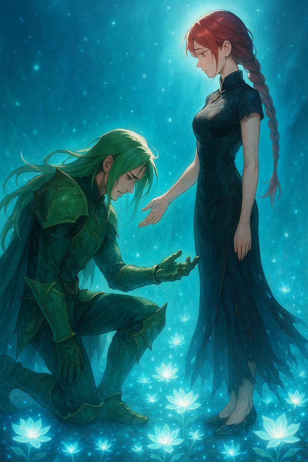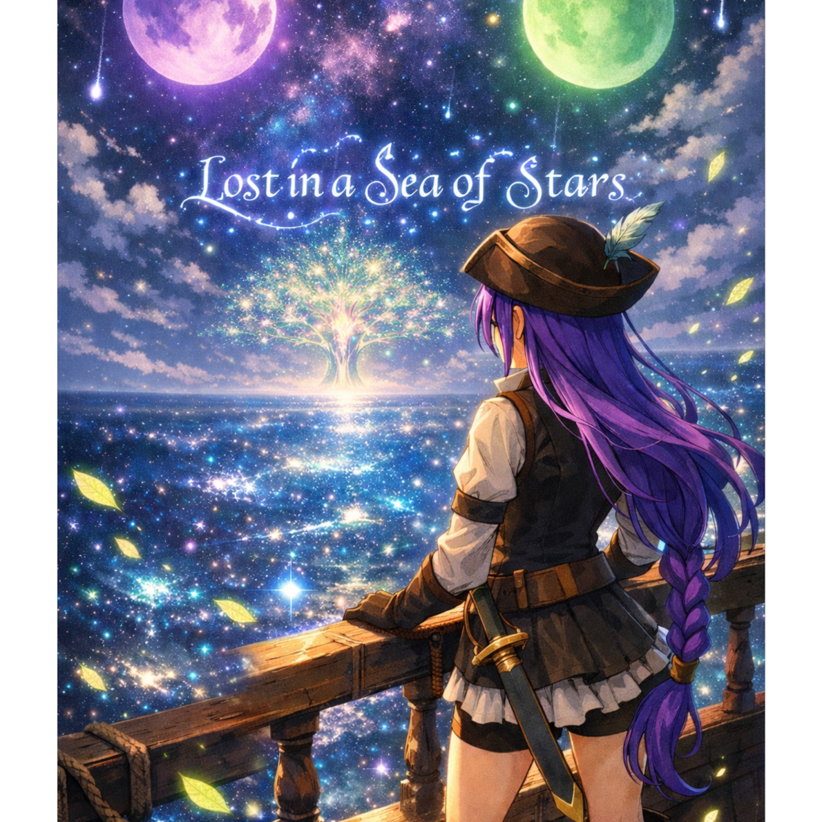 A serene, emotional scene inspired by Final Fantasy X, capturing the gentle, nostalgic mood of "Suteki Da Ne, " Two characters walking hand in hand under a starry night sky, the moon softly glowing above, Clouds drifting like whispers, reflecting light and distant dreams, Subtle tears of starlight falling, illuminating the scene, Soft winds ruffle hair and clothes, creating a sense of tender motion, Warm, ethereal lighting, painterly style, cinematic composition, magical realism, highly detailed, emotional atmosphere
