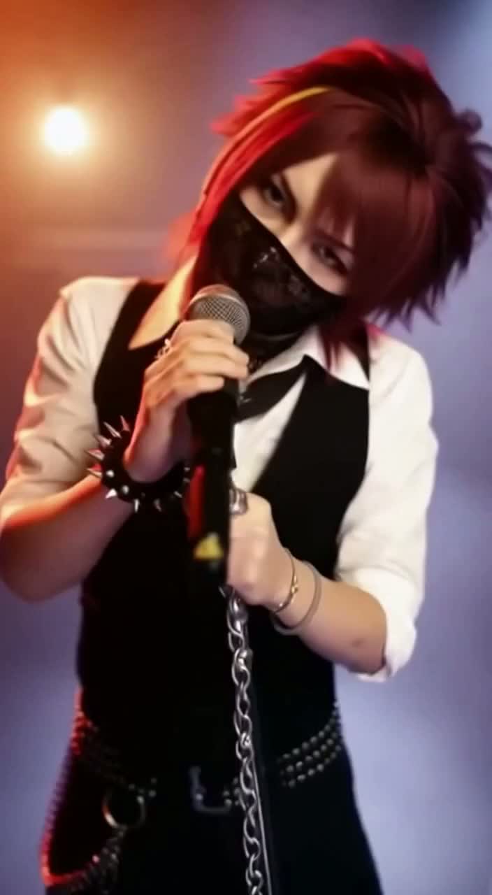 Visual Kei loud rock, dark and heavy, low-tuned guitars, powerful drums, emotional and melodic clean vocals, atmospheric strings and synths, aggressive delivery, vocal fry, slap bass, low tuned bass, 電子サンプル