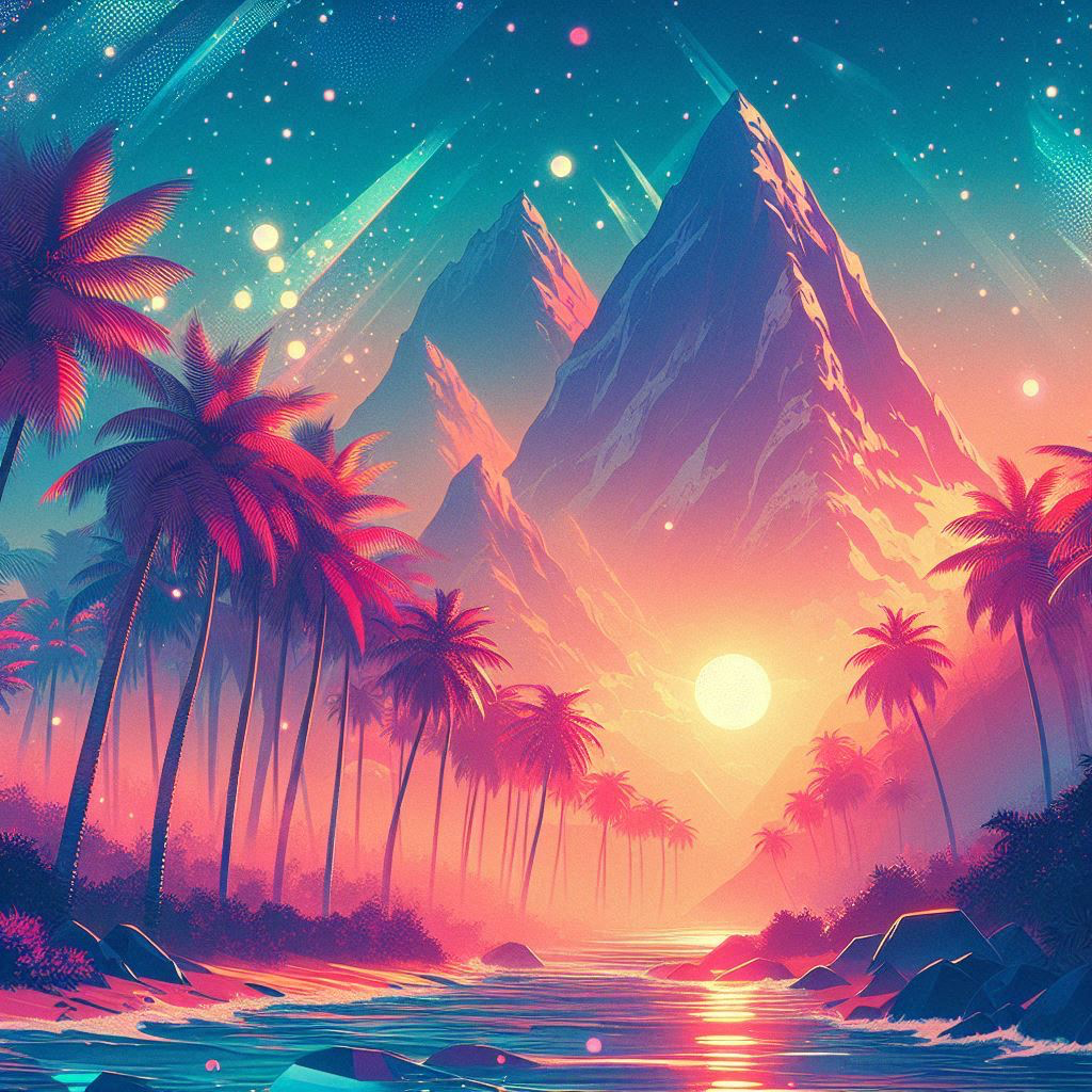 Psytrance, cinematic, disco, tropical pop, dance pop, uplifting fun, danceable, afrobeat elements, Dreamy, warm, melodic, Clean electric/acoustic guitar arps, warm pad synths, soft plucked marimba/kalimba, gentle percussion (shakers, brushed snare), soft sub-bass, ambient ocean FX