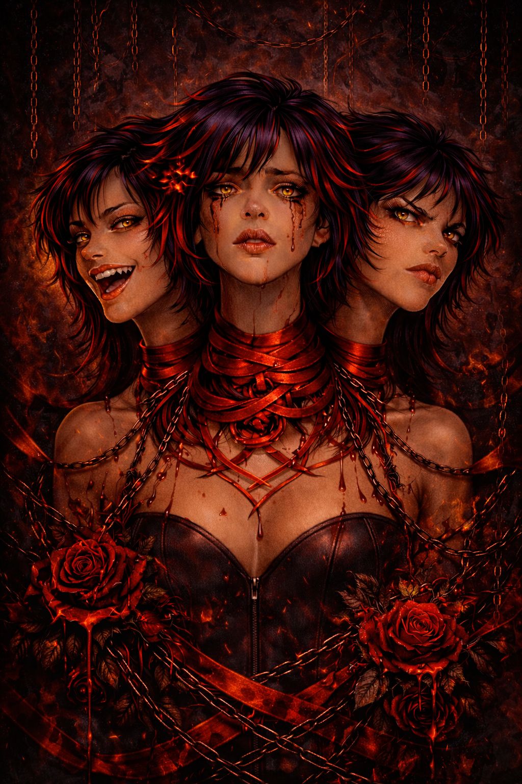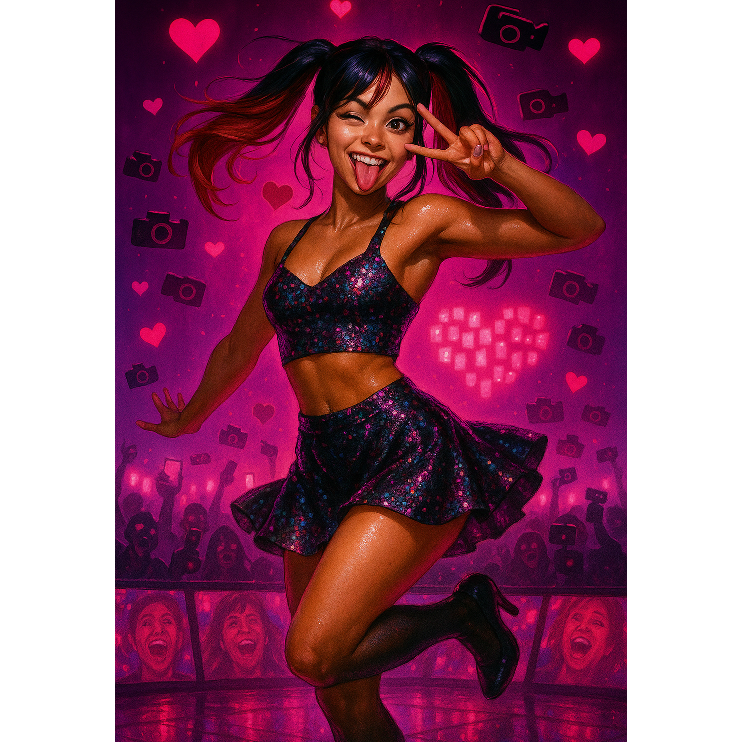 98 BPM slow sensual dark-pop bounce with deep sub and tight groove, Add a 3-note motif in a minor key with one slightly unsettling ‘wrong’ note that returns, Use sudden dropouts (half-bar silences) to create a hint of fear, Add distant metallic textures and reversed swells into impacts, Intimate, confident, seductive, but with a shadow behind it, Background: slaps, moans, giggles, and short screams, Vocals: unsettling, Shaky female vocals with clear pronunciation