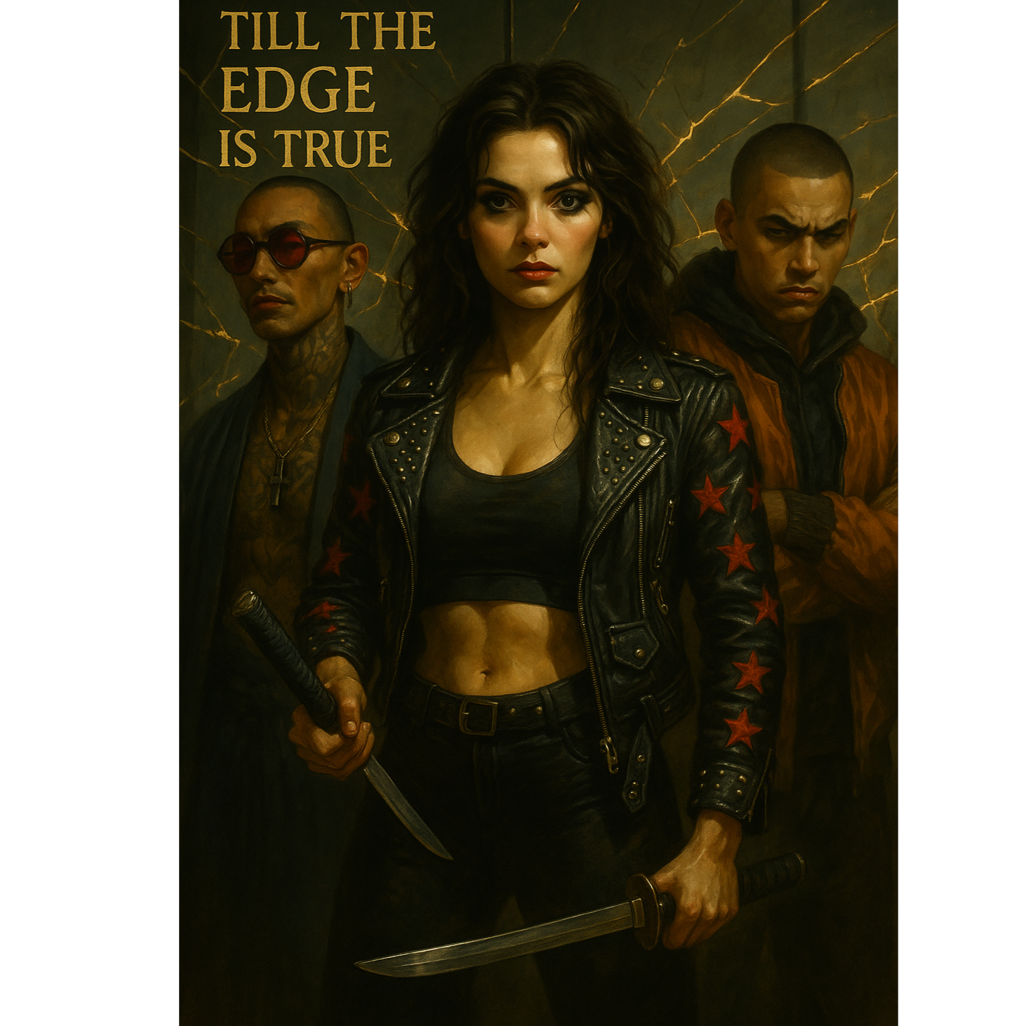 Grunge + industrial + dark trap hybrid, 67-72 BPM, minor key, Female vocals, Verses tight and percussive — whispered or snarled like sparring counts — over deep 808s, sharp snare cracks, and trap hi-hat rolls, Distorted bass and metallic hits like sticks on mats, Dirty palm-muted guitars swelling in chorus, Background shouts (Mitsu & Kota) punctuating key words like dojo calls, Bridge strips to bass + low breathing + faint whetstone sound before exploding into final chorus with layered vocals, crashing cymbals, and Mitsu/Kota shouting over the last lines, Cinematic, feral, kinetic — a sweat-and-blood anthem that makes you move