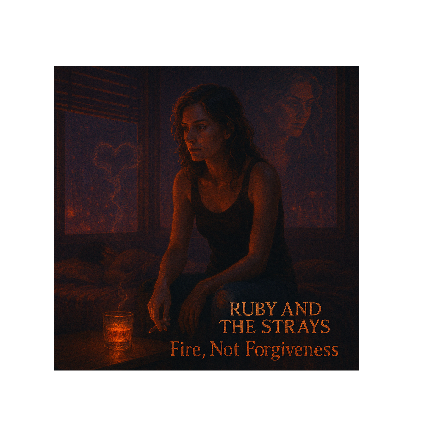 Grunge + Industrial + Darkwave hybrid, 85–90 BPM, minor key, Female vocals smoky, intense, and defiant — verses low, restrained like a confession; chorus erupts with feral power and distorted harmonies, Layered gritty guitars with heavy reverb, sub-bass rumble and metallic percussion, Industrial kick and snare with echoed claps and saturated trap-inspired fills, Darkwave synth pads and distant vocal whispers for atmosphere, Bridge strips to filtered bass and haunting vocals, then explodes into final chorus like a firestorm breaking through steel, Final note hangs in reverb — ash cooling to silence