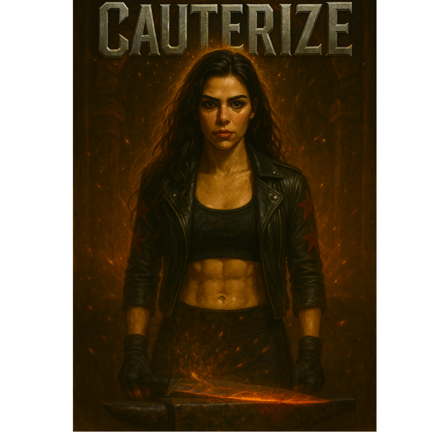 Grunge + industrial + darkwave hybrid, ~85 BPM, minor key (D minor or E minor), Smoky, determined female vocal — verses low and tense like a breath before flame, pre-chorus mechanical and rhythmic, chorus erupting into layered vocals and distorted guitars, Thick, distorted bass and metallic percussion; snare hits like hammer on steel, Add occasional sampled sparks, anvils, or hiss of flame, Bridge strips to heartbeat kick and reverb-drenched guitar, voice intimate and raw before final chorus crashes back, Cinematic and anthemic — sounds like a forge singing itself awake, Themes: resilience, transformation, scars as strength