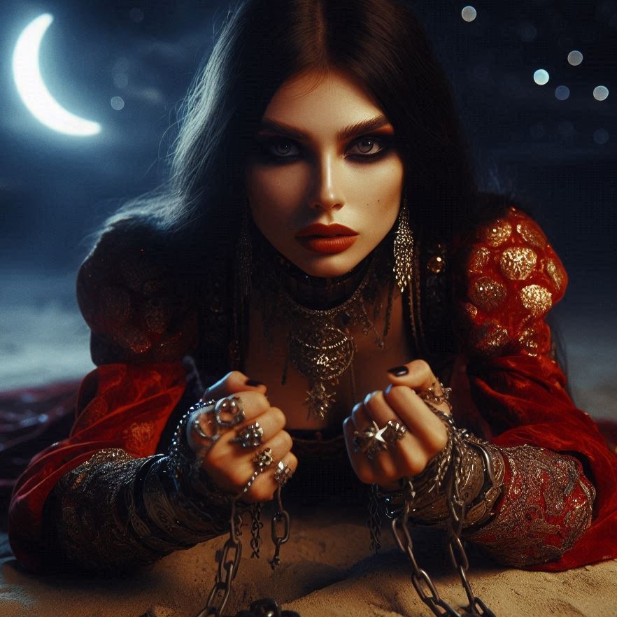 speed metal, shredding lead guitars, fierce and powerful female vocals, dark brooding sinister atmosphere