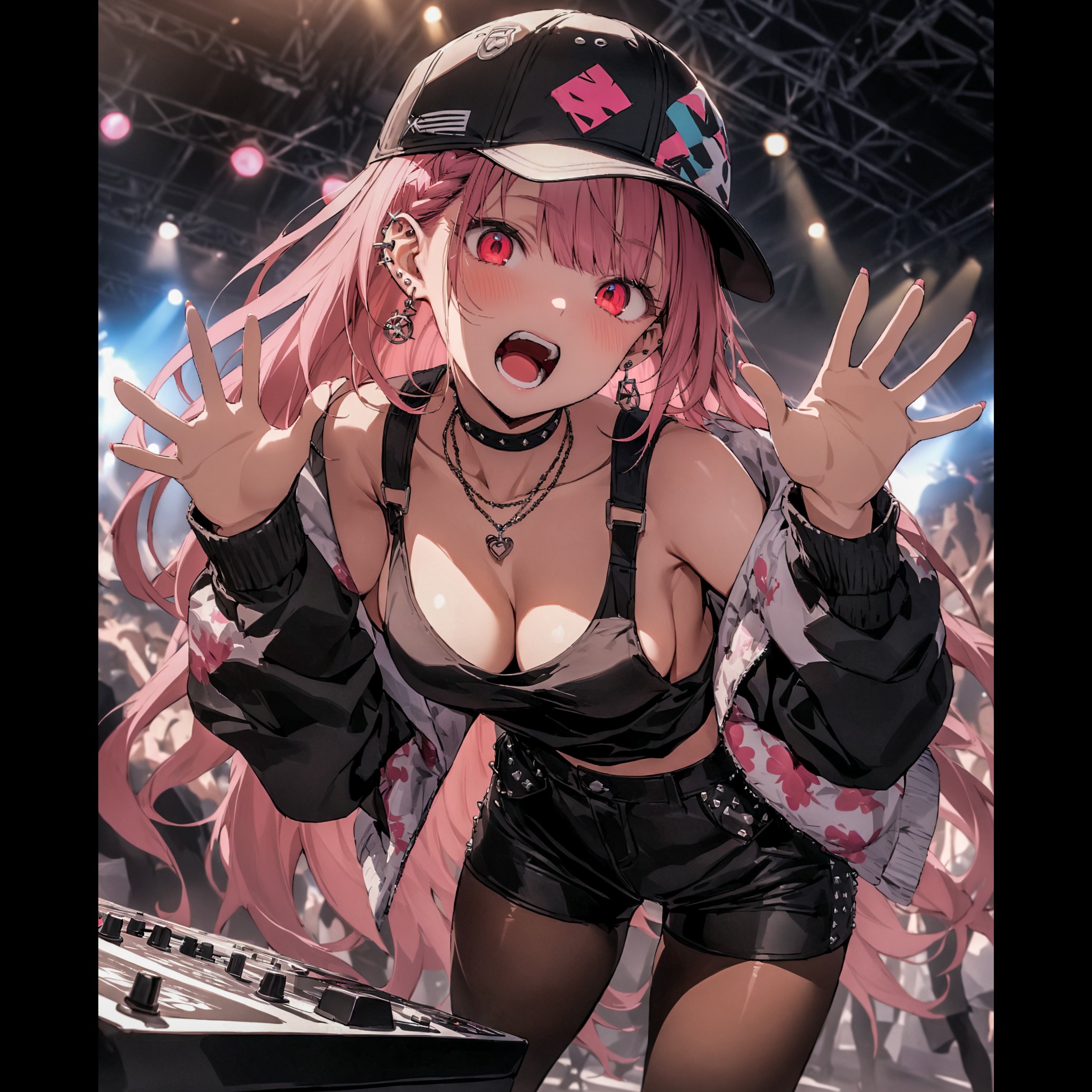 euro-dance stadium techno, hands up style, 142 BPM, Emphasize the, aggressive four-on-the-floor kick and open hi-hat, hollow off-beat donk bass, massive detuned supersaw synth lead, anthemic wordless vocal chant, aggressive female shouting MC vocals, crowd stadium atmosphere, heavy sidechain pumping, bright aggressive mix, hard house influences, A song longer than 5 minutes