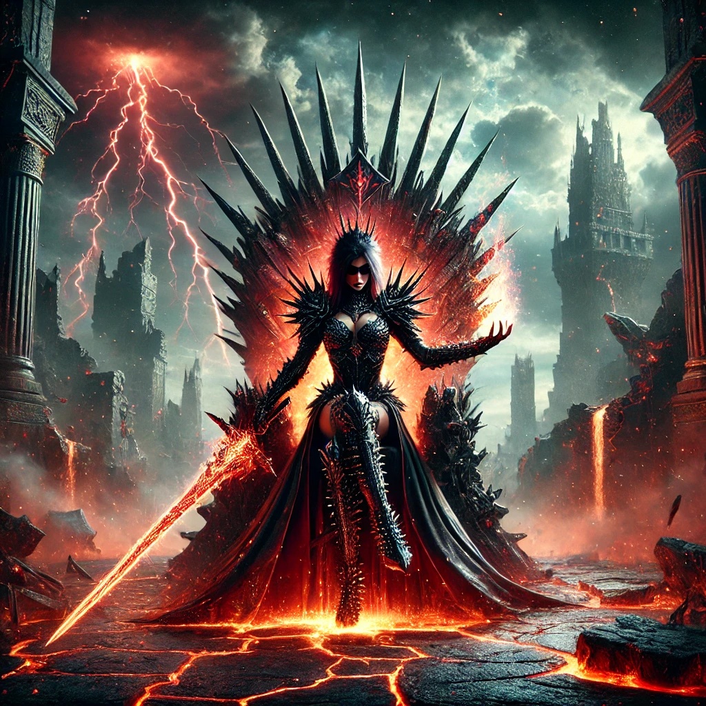 "Aggressive dark metal track with heavy guitars, thunderous drums, and roaring female vocals, Include fast-paced rhythms, explosive chorus drops, and eerie background effects, Pure rebellion and power