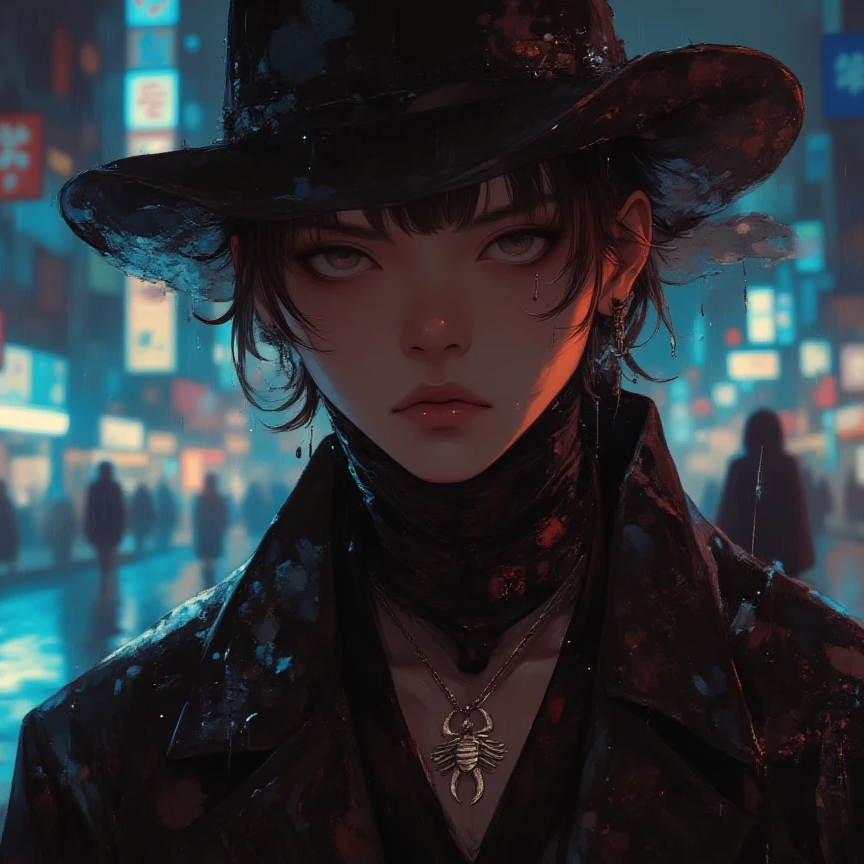 Dark, stylish R&B ballad built around a minor key and 88 BPM mid-tempo groove, The sound is nocturnal and moody, with tight kick, snare, and syncopated hi-hats over a deep sub-bass pulse, Harmony is minimal, relying on ambient synth pads, dissonant textures, and sudden silences that sharpen the dramatic aura, Male vocals move from breath-heavy whispers in verses to urgent pre-chorus phrasing, exploding into sharp, powerful choruses with sniper-like precision, English reinforcement lines are delivered in a higher, falsetto-infused tone for haunting effect, Production is spacious, cinematic, with reverb and subtle delay emphasizing darkness and mystery, The atmosphere is enigmatic, poisonous, stylish, and dangerous, balancing restraint with sudden intensity