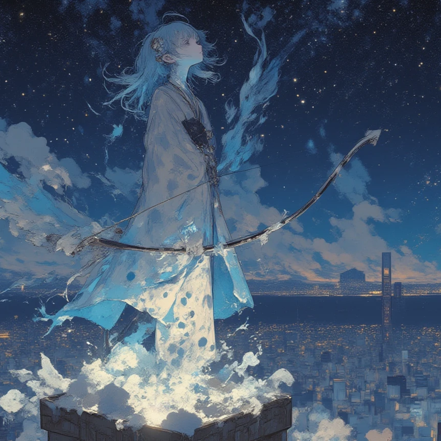 A heartfelt, skyward rock ballad with a clear and emotionally nuanced female vocal reminiscent of 90s J-pop, The song contrasts intimate, soft verses with expansive, anthemic choruses, Instrumentation blends bright electric guitars, acoustic strums, cinematic strings, soft piano arpeggios, and a steady rhythm section that crescendos toward the end, Atmospheric synths and a wide stereo mix create an uplifting sense of freedom and release, The mood is bittersweet yet liberating — like watching an arrow fly across a boundless sky