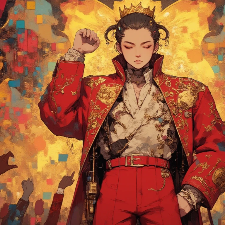 A high-energy Japanese ska anthem with theatrical bravado and over-the-top confidence, Driven by a 2-beat ska rhythm, it features sharp offbeat guitar chops, bouncy walking bass, and a brass trio (trumpet, trombone, sax) delivering explosive fanfares and comedic unison stabs, Drums are tight, with snare hits on 2 and 4, accented by lively tom fills and bright cymbals, The male lead vocal is dramatic, expressive, and dead serious even when lyrics are absurd—like a showman owning the spotlight, Group shouts and crowd-like responses echo phrases like “ガオー!” and “当然俺だろ?”, creating a comedic call-and-response feel, The bridge includes shouted stage directions and brass hits, building into a triumphant, overblown finale, The mood is playful yet bold, with every element—from brass to spotlight silences—serving a self-celebratory ego parade, Mistakes and exaggerations are reframed as “演出”, making the performance both ridiculous and glorious