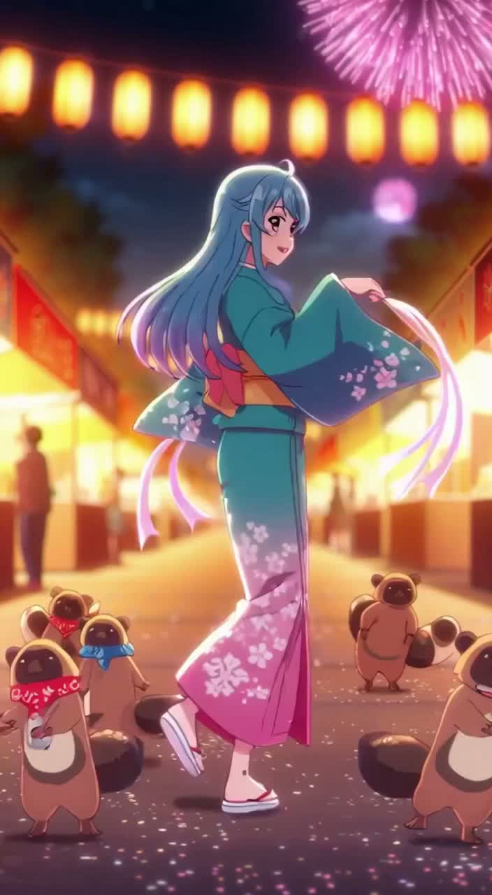 Uplifting Japanese Folk Lo-Fi Kawaii J-Rock Anthem × Festival Slime Girl Fusion, 128 BPM driving 4/4 tempo with warm micro-syncopation and taiko pulse, shamisen leads and koto arpeggios open misty festival glade, rhythmic acoustic strumming + distorted electric guitars + atmospheric synth pads with side-chain compression, twinkling bell synths weave with slime bubble plops, muffled lo-fi brushes + taiko layers + compressed snare kit + watery droplet drips, warm analog sub bass + punchy line, ethereal slime girl vocals with kawaii whisper-chant to passionate tenor head voice, layered twinkling echoes + soaring harmonies, 2s shrine mist reverb + gated drums, I-V-vi-IV G Major Mixolydian progression, dynamic 20%-80% builds from intimate verses to explosive choruses, Verse-PreChorus-Chorus structure with shamisen hooks and taiko festival energy