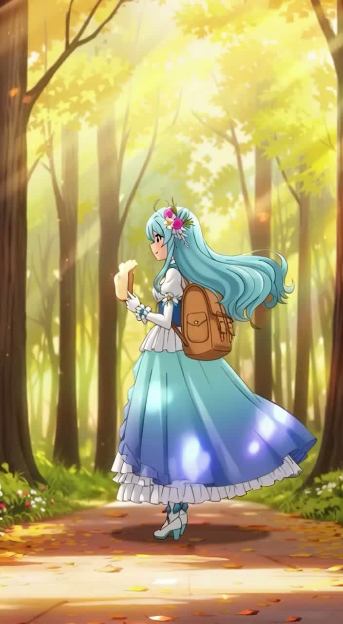 kawaii moe J-pop, forest fantasy healing ballad, soft slime girl idol pop, cozy small trip picnic vibe, gentle acoustic guitar plucks, warm synth chimes, bouncy 122 BPM sway, breathy cute nasal vocals, light shuffle drums, nature leaf rustle fx