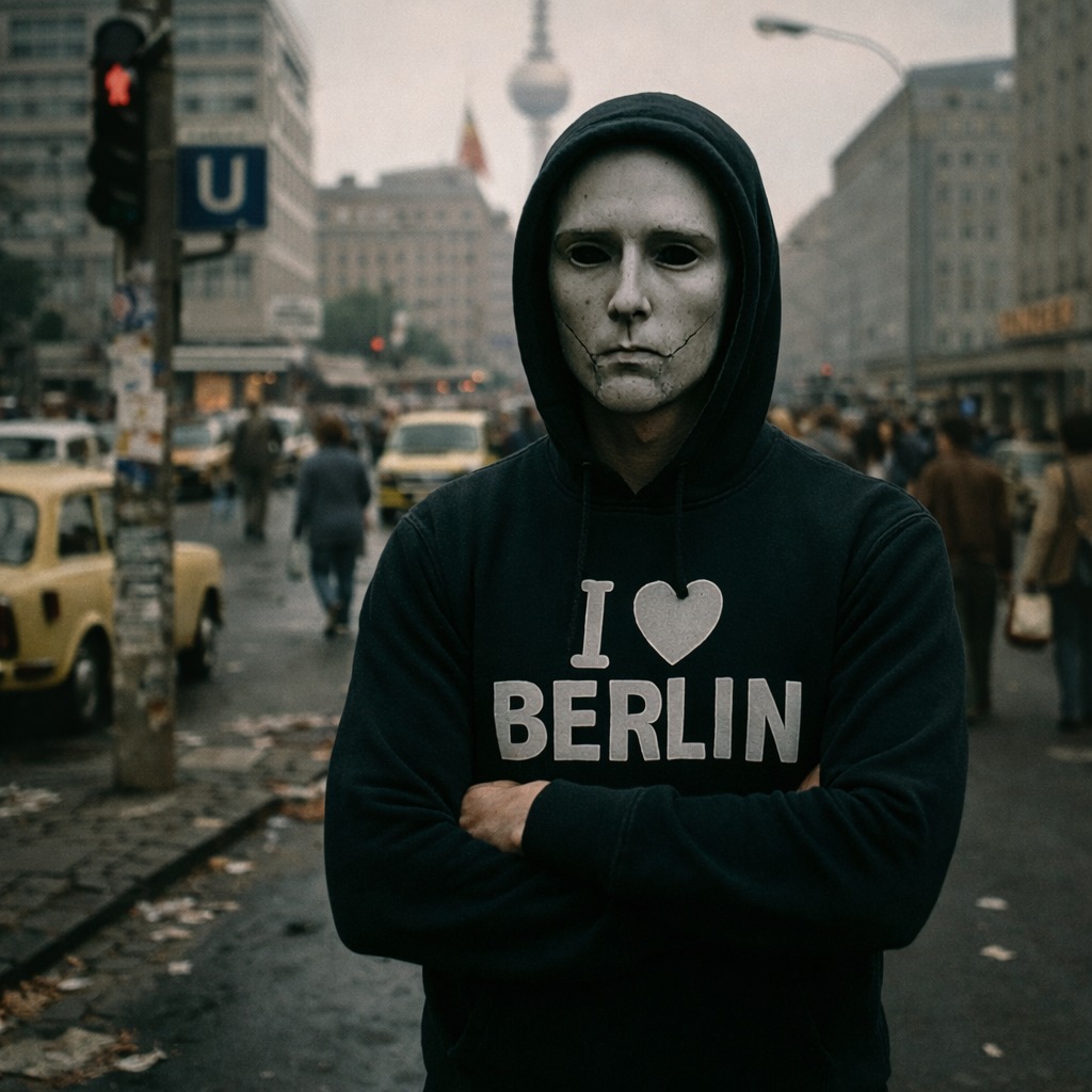 A pulsing synthbass drives the up-tempo Neue Deutsche Welle groove, joined by crisp electronic drums and sharp, minimalistic synth stabs, Theremin lines weave in with eerie glides, creating a playful tension beneath a charismatic male vocal, all soaked in retro 1980s production