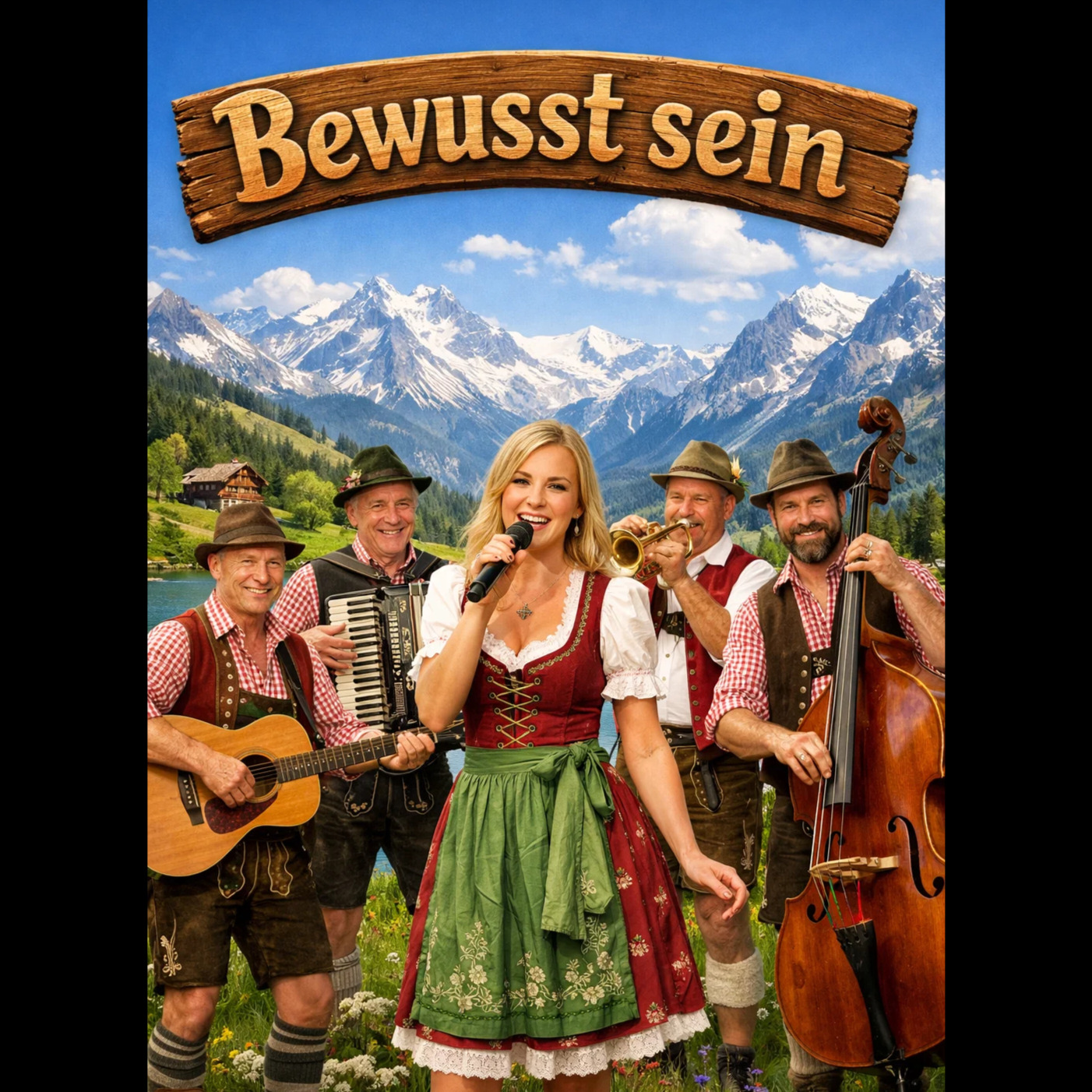 Sanfte Alpenfolklore mit Zither- und Hackbrett-Arpeggios, Verse setzen auf akustische Begleitung, dezentem Akkordeon und vorsichtige Jodelelemente, Pre-Chorus bringt Streicher, fein eingebettetes Alpenhorn, etwas majestätisch, In der Bridge hallt ein Alpenhorn-Solo zwischen Bergen, während Harfe und Zither zarte Muster legen, Der Chorus glänzt durch einen mehrstimmigen Chor mit leichten Jodelharmonien, voller Instrumentierung und fröhliche Melodie