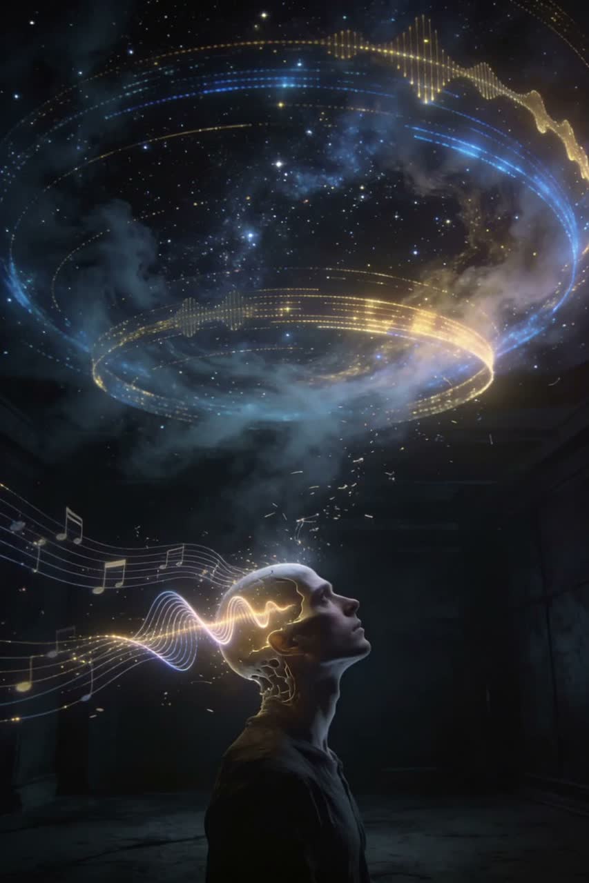 Philosophical cinematic pop song about consciousness and the nature of mind, Emotional male vocal, warm and thoughtful, Slow build arrangement starting minimal with piano and ambient pads, evolving into orchestral pop with strings, soft drums and atmospheric synths, Reflective, curious mood with a sense of wonder about science, existence and the universe, Similar emotional tone to cinematic indie artists and modern orchestral pop, Intimate verses, uplifting expansive chorus with choir layers, Gradual build toward an epic instrumental outro with large strings, ambient choir and powerful cinematic atmosphere, Tempo around 75–85 BPM, key minor but hopeful, spacious production, emotional and intellectual vibe, Style tags: