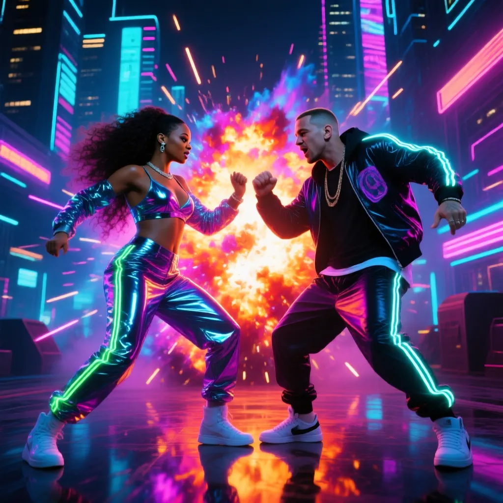 era: "2010s", genre: "hip-hop, rap, R&B, pop", style: "contraste entre rap agressivo e melódico R&B, versos intensos intercalados com refrÔes emocionais, produção cinematogråfica, dramåtica e detalhada, dinùmica expressiva", vocals: "male, American, extremely sharp, fast rap delivery with precise articulation, raw emotional intensity, subtle tonal shading; female, Barbadian, powerful mezzo-soprano with rich resonance, controlled vibrato, soulful phrasing and soaring emotive delivery", mood: "intenso, sombrio, apaixonado, catårtico, conflituoso mas esperançoso", instrumentation: "piano dramåtico, hip-hop beat marcado, atmospheric synths, cinematic strings, layered backing vocals, subtle reverb and delay for depth, cinematic soundscape with clean separation of instruments", mastering: "ultra-clean clarity, balanced mix between rap and vocals, strong and defined lows, present mids, bright highs, wide stereo field, cinematic depth, 24 bit