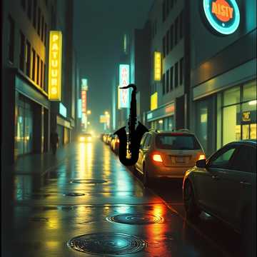 Smooth jazz-funk instrumental at a moderate pace, featuring acoustic piano, electric guitar with light reverb arpeggios and rich jazz chords, Warm electric bass walks under steady drums with a gentle shuffle on hi-hat and snare, Saxophone leads with sustained notes and improvisational touches, while lush synth pads and rhythmic pulses create an atmospheric city-night vibe, Modern electric accents and subtle vocoder textures interweave, cycling through a recurring motif, with sax variations and reflective harmonies completing the ambient, dreamy texture