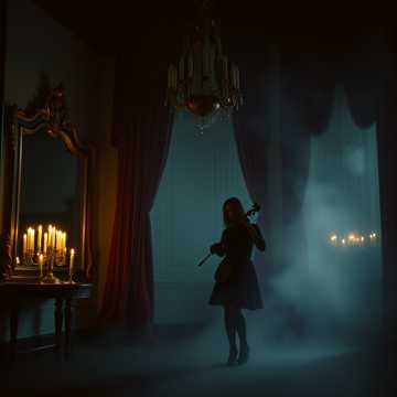 Slow, dramatic orchestral theatrical ballad (~60–68 BPM) inspired by The Phantom of the Opera, Full symphonic arrangement with strings (violins, violas, cellos) carrying long, emotional legato lines; French horns and trombones adding depth; timpani and bass drum for grandeur; harp and pipe organ accents creating gothic atmosphere, Piano anchors the harmony with rich minor chords and gentle arpeggios, Lead vocal: male tenor in the style of Michael Crawford—warm yet commanding, trained theatrical tone, crystal diction, strong controlled vibrato, dynamic range from hushed confession to powerful sustained high notes, Record vocal dry and forward, adding cathedral-style reverb to blend with the orchestra for scale, The phrasing should feel lived, dramatic, and sincere—never operatic excess, just pure musical theater emotion, Mix for cinematic width and depth: lush midrange, soaring highs, and a resonant low end, Mood: tragic romance, timeless drama, haunting beauty echoing in candlelight