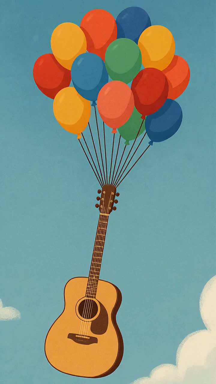 Mid-slow tempo (72 BPM) cinematic folk ballad with warm, organic instrumentation and a heartfelt, narrative tone, Core arrangement built around fingerpicked acoustic guitar and upright bass, supported by light brushed drums and subtle piano or dulcimer accents, Add violin and cello swells for emotional lift in choruses, but keep them natural—more texture than orchestral, Optional pedal steel or banjo harmonics for depth and Americana color, Lead vocal: male tenor, intimate and steady, with a conversational tone—clear chest voice, no vibrato in verses, subtle lift in chorus, Harmonies: two or three soft background voices that enter gently during refrains, mixed close for warmth, Keep production acoustic and analog, using real room reverb or small-hall ambience, No pads or synths—just air, wood, and strings, Overall mood: bittersweet, tender, and human; it should sound like a memory being retold under a twilight sky—hope and ache sharing the same breath