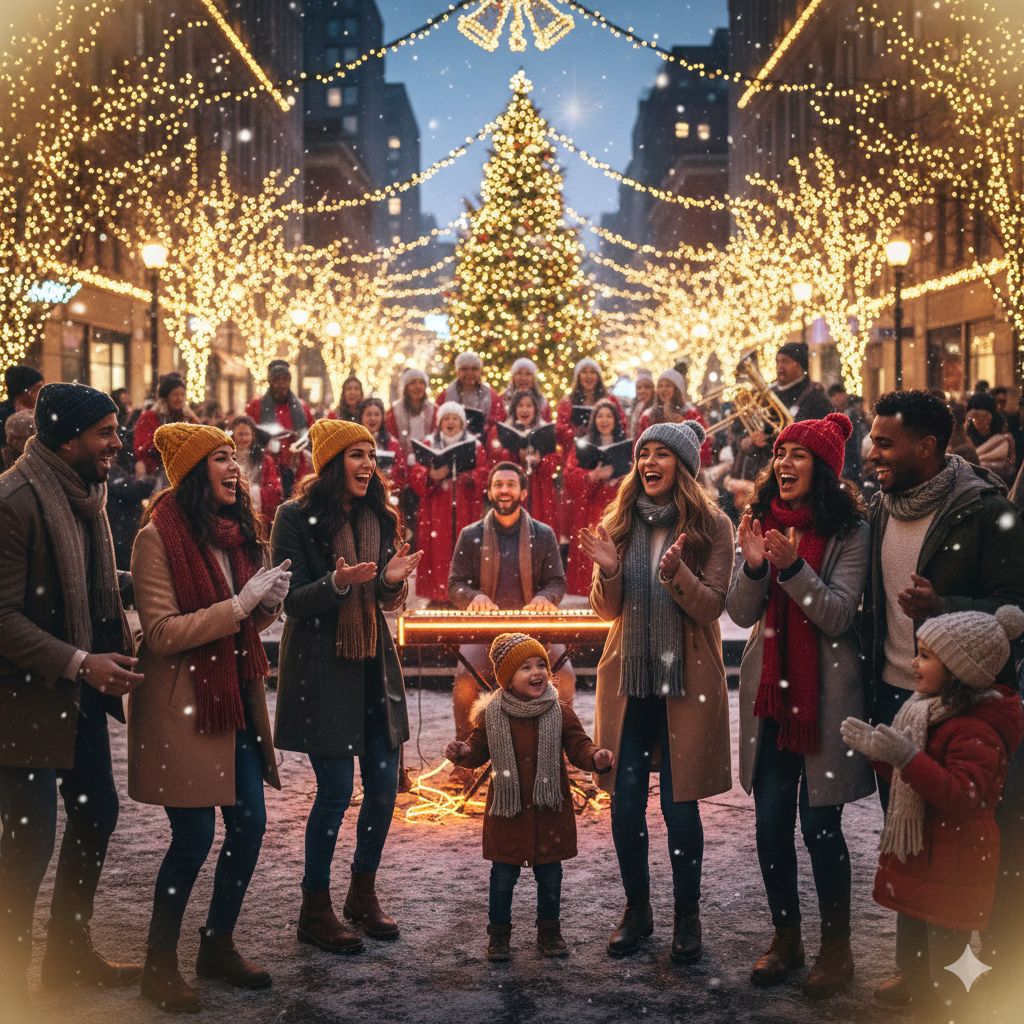 Bright female vocal with powerful delivery, rich harmonies, and expressive phrasing, Include festive instruments like sleigh bells, glockenspiel, tambourine, rhythmic claps, retro electric piano, warm strings, and bold brass stabs, Style inspired by 60s pop and modern holiday dance music, Structure: spoken intro, verse, pre-chorus, catchy chorus, second verse, slowed emotional bridge, final chorus with key change, festive outro, Mood: joyful, nostalgic, celebratory, Add subtle FX: vinyl crackle, sparkle chimes, faint background cheer, Designed to be upbeat, catchy, and instantly recognizable as a classic holiday pop anthem, Target song length around 4 minutes