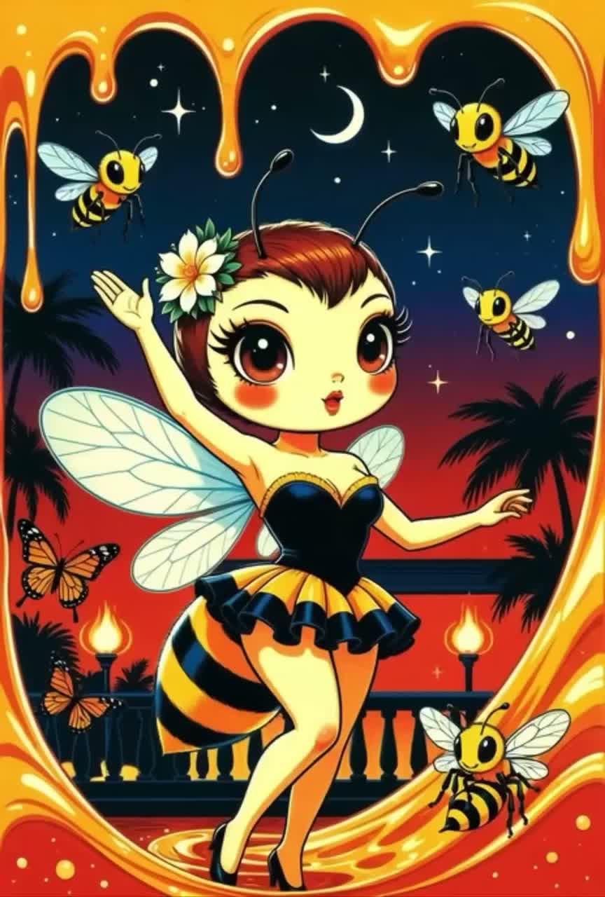 Style: Synth-Arps wie „summende“ Flügel, kurze Vocal-Cuts: bzz / buzz / honey, Drop mit superschnellem Bass, Mood: Happy Bee-hype party