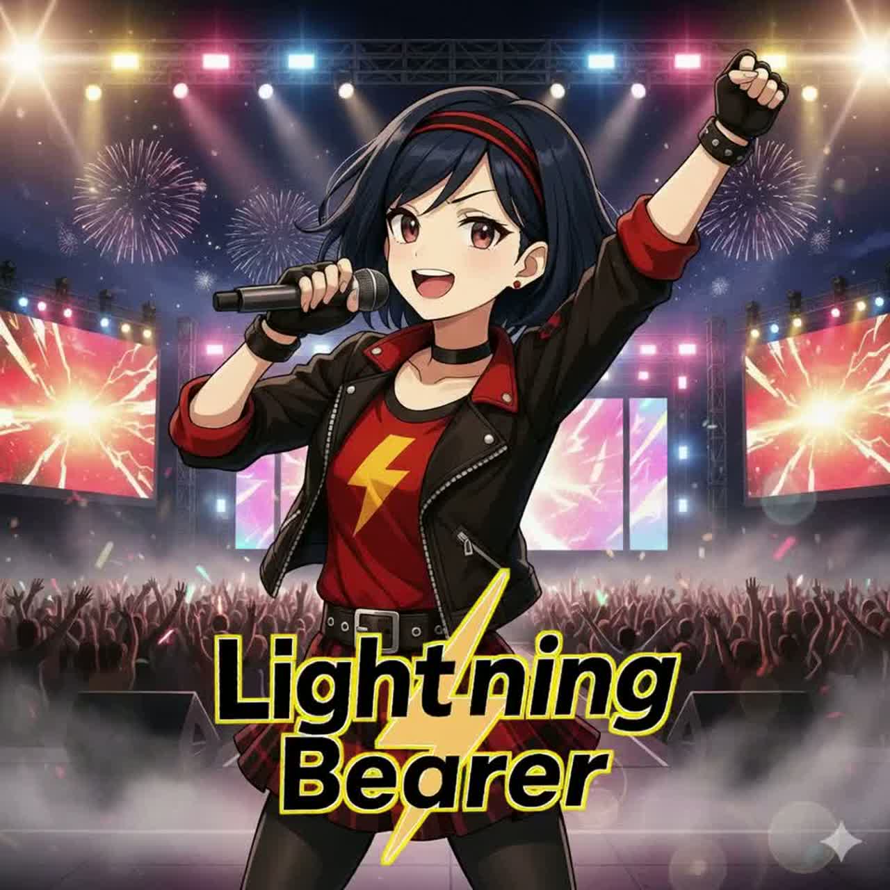 rock, electro rock, girl vocal, emotional, intense, teen female vocal, powerful, electronic elements, dramatic, edgy, energetic, spark, dark pop, anime opening, electroclash, vocoder, futuristic, jungle, hardcore, synthwave, rave