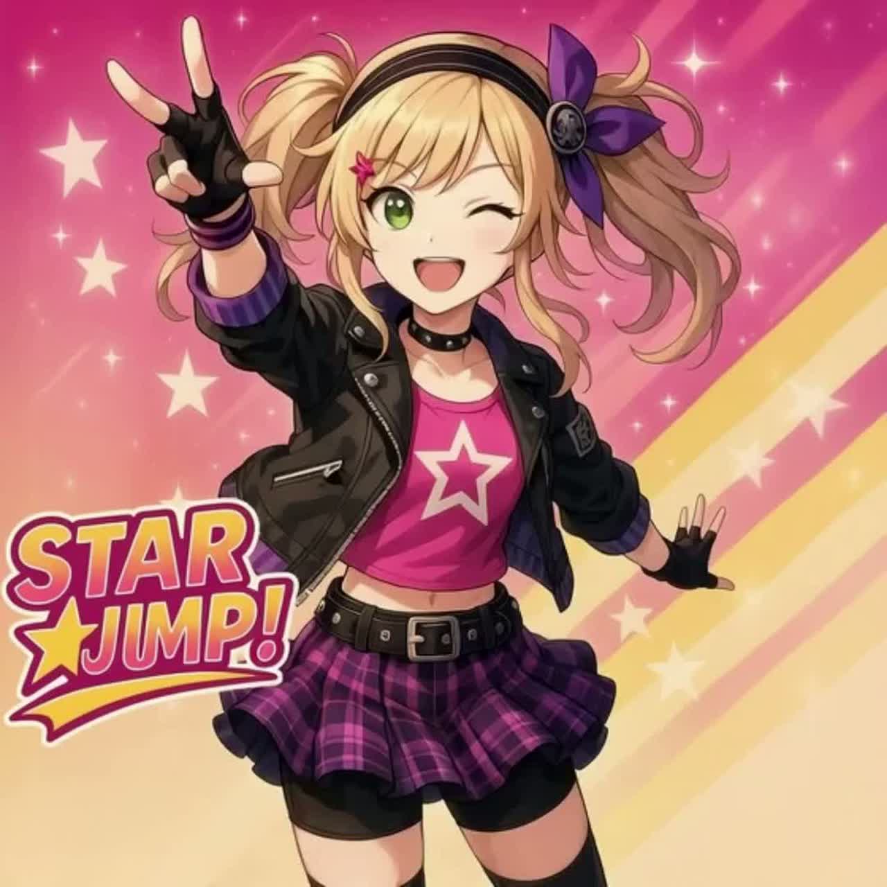 japanese pop idol, ska, high energy, jump pop, bright and cheerful, female vocal, upbeat, anime opening style, pop rock, electric guitar, synth lead, energetic drums, handclaps, catchy chorus, positive vibes, summer festival, live concert feeling