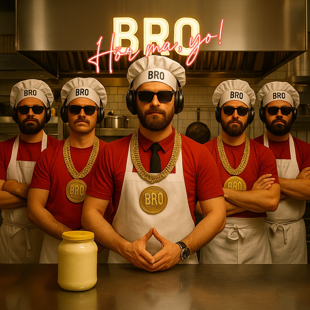 Punk, reggae, EDM, Chorus hits with tight, high-energy punk aggression - dry, upfront vocals with a cheeky, snotty edge, backed by slashing alternative/post-punk guitars and compressed, punchy drums that drive a raw, restless momentum, A crunchy garage-rock grit underlines the frantic theme and blooms with crowd-ready chants and festival-style lift, widening the mix and adding euphoric space, The verses flip into a bright, smooth reggae-rave hybrid: deep, round bass, syncopated offbeat guitars, and a relaxed, danceable groove that contrasts the tense choruses, The bridge before the final chorus consists of half vocals, half spoken word, and is carried by a slowly building drum roll, Short vocal chops, playful spoken interjections, and sample-scratches act as transitions between sections, giving the arrangement a modern BRO-flavored twist - part punk, part reggae, part EDM energy, all tied together with humor, swagger, and chaotic self-awareness