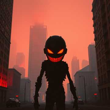 Death metal + trap fusion with crawling tempo shifts, subsonic bass pressure, bone-crushing kick drums, scraping guitar harmonics, unsettling minor scales, atonal synth stabs, monstrous vocal layering, whispered threats, panic sirens, distorted breathing FX, claustrophobic horror atmosphere