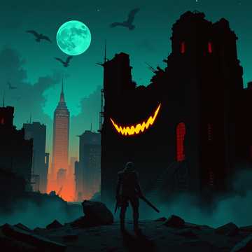 Cinematic doom-metal trap hybrid, ultra-low sub drones, slow crushing rhythm, echoing toms, distant explosions, industrial reverb tails, despair-filled growls, ritualistic chanting undertones, cold metallic synths, atmosphere of isolation and extinction