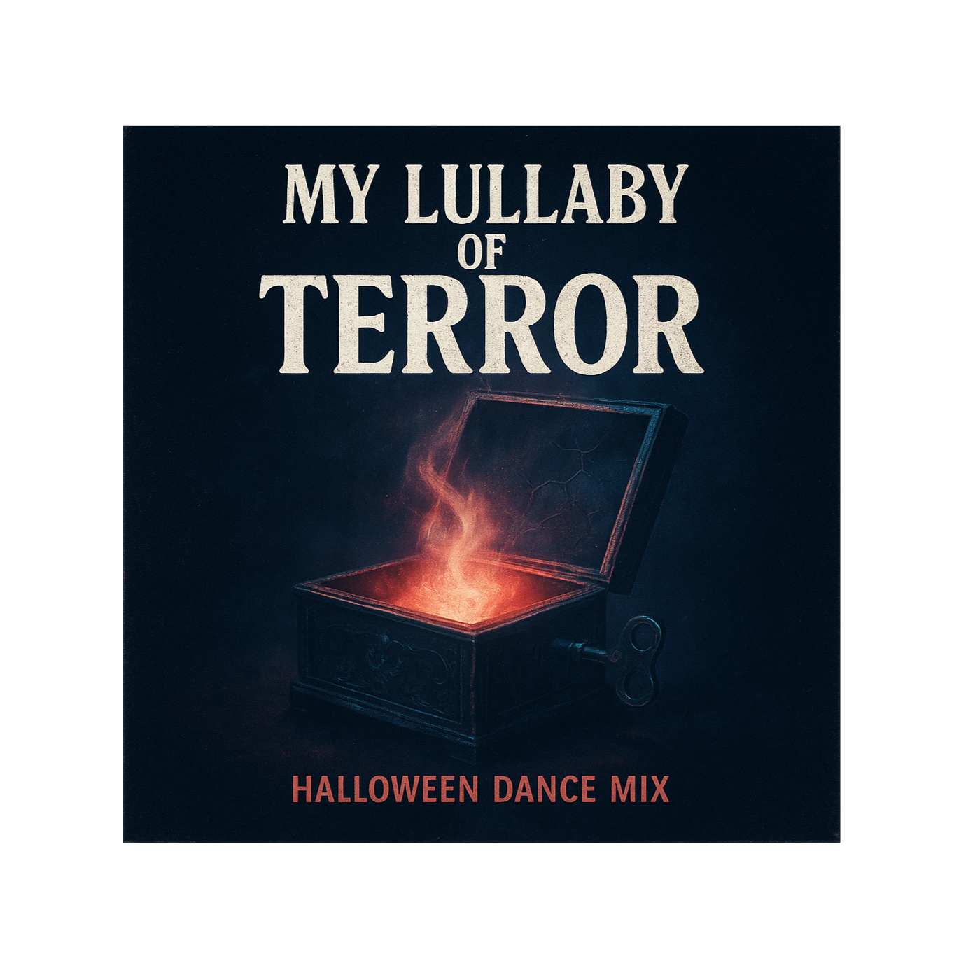 A haunting music box melody opens, layered with eerie, detuned bell samples and subtle vinyl crackle, At 126bpm, driving trance drums and distorted bass pulse underneath, Whispered vocal textures swirl in the mix, Sectional breakdowns use reversed piano and dark pads, building intensity before slamming back into twisted synth leads, rattling percussive FX, and spectral whispers, blending horror ambience with club-ready energy