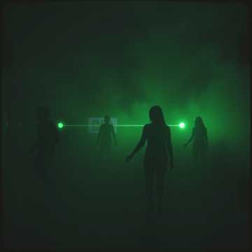 Opens with pulsing, layered synths and a distorted bassline, The beat drops hard with pounding, syncopated drums and eerie FX sweeps, Spooky vocal chops echo over frenetic hi-hats, Sudden breakdowns with rapid build-ups intensify the relentless, hypnotic energy